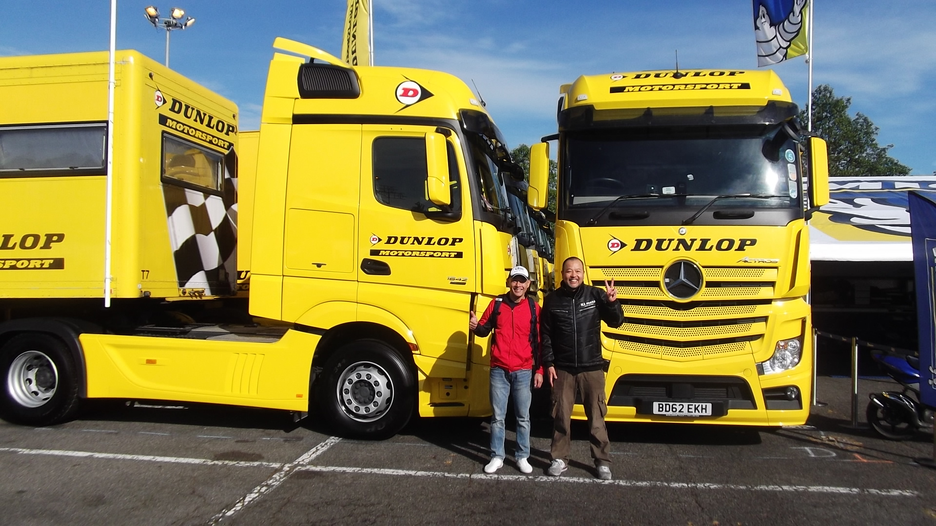 今回お世話になるダンロップさんのトラックの前でパチリ