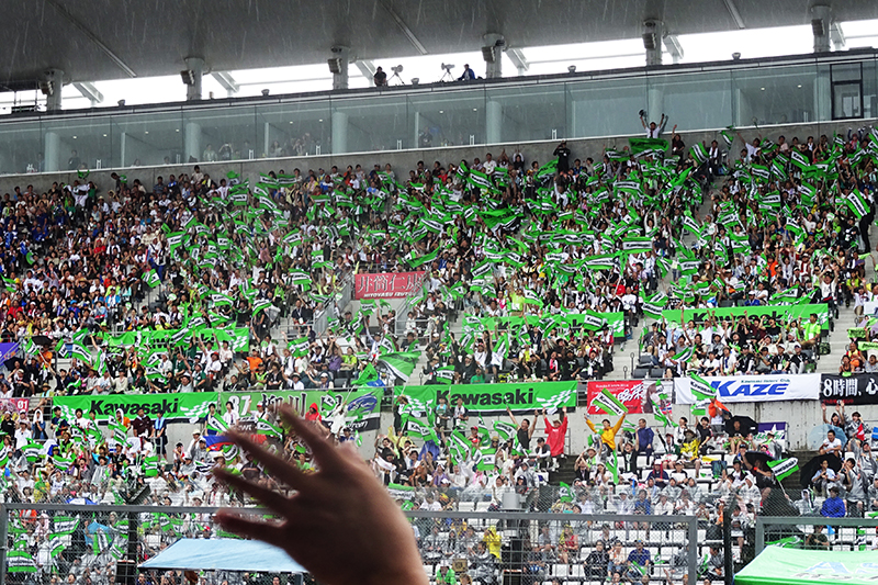 「カワサキ応援席のみなさ~ん! イエ~イ!!」
